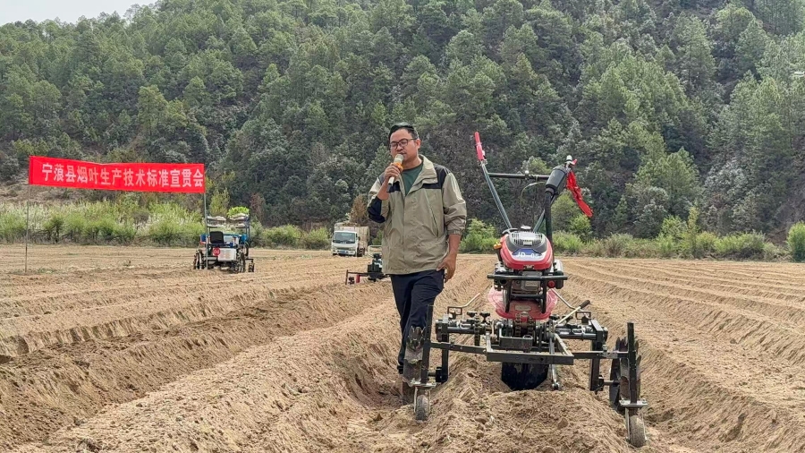 现场会上,多种专用农机具依次排列,进行连贯作业演示,全面展现农机与农艺深度融合的实际成效。技术人员围绕农机性能、操作要点、适用条件,以及其与宁蒗当地土壤特性、气候条件和烤烟生长规律的匹配性进行了详细讲解。