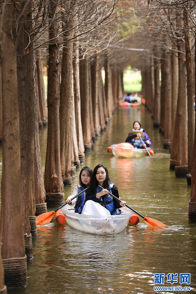 游客在湿地公园内游玩(11月15日摄)。新华网发(郑益 摄)