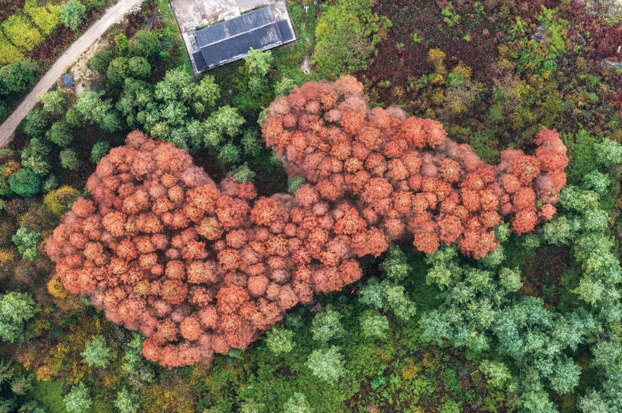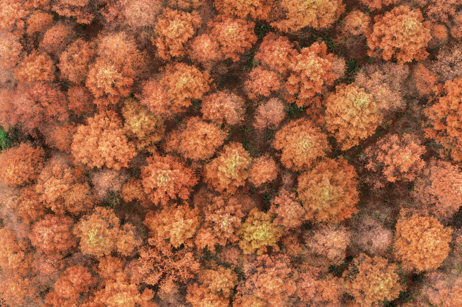 水杉与松柏红绿交织(11月19日摄)。唐应平 摄