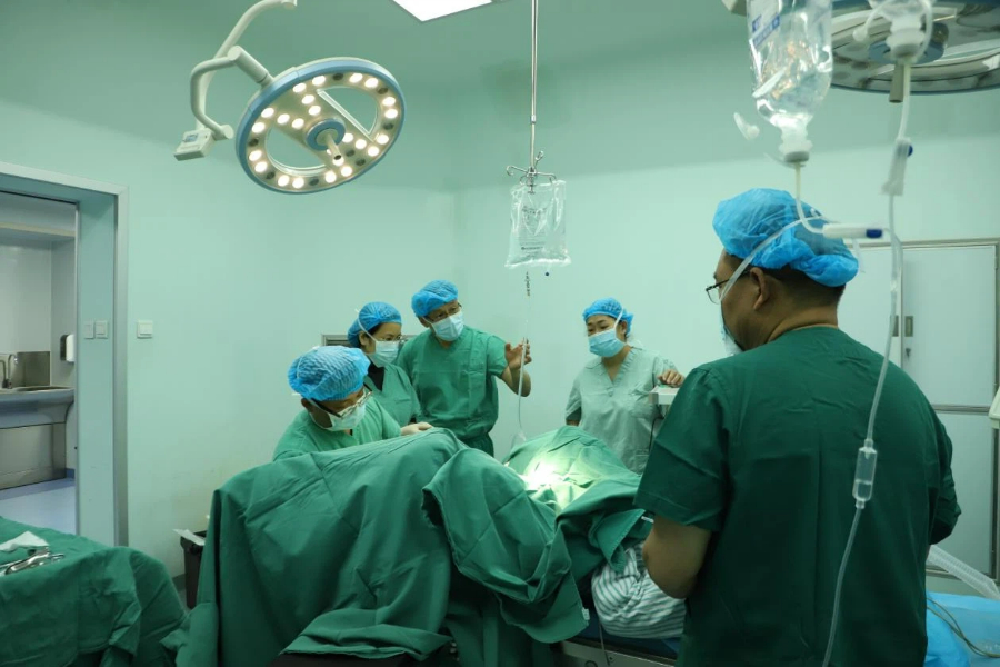 蒋立辉(左三)在指导手术(3月17日摄)。张顺富 摄