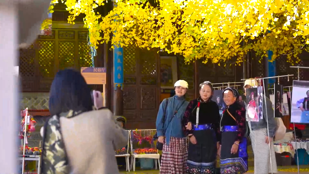 眼下,中国历史文化名镇大理凤羽的300多年古银杏进入最佳观赏期,金黄叶片与古色古香的凤翔书院交相辉映,吸引各地游客前来打卡。