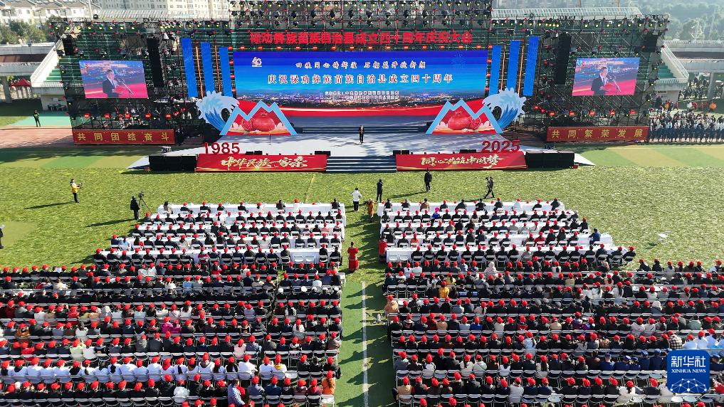 11月25日,云南省昆明市禄劝彝族苗族自治县成立40周年庆祝大会在禄劝县体育场举行。庆祝大会上,当地各族群众欢聚一堂,载歌载舞为家乡送上祝福。