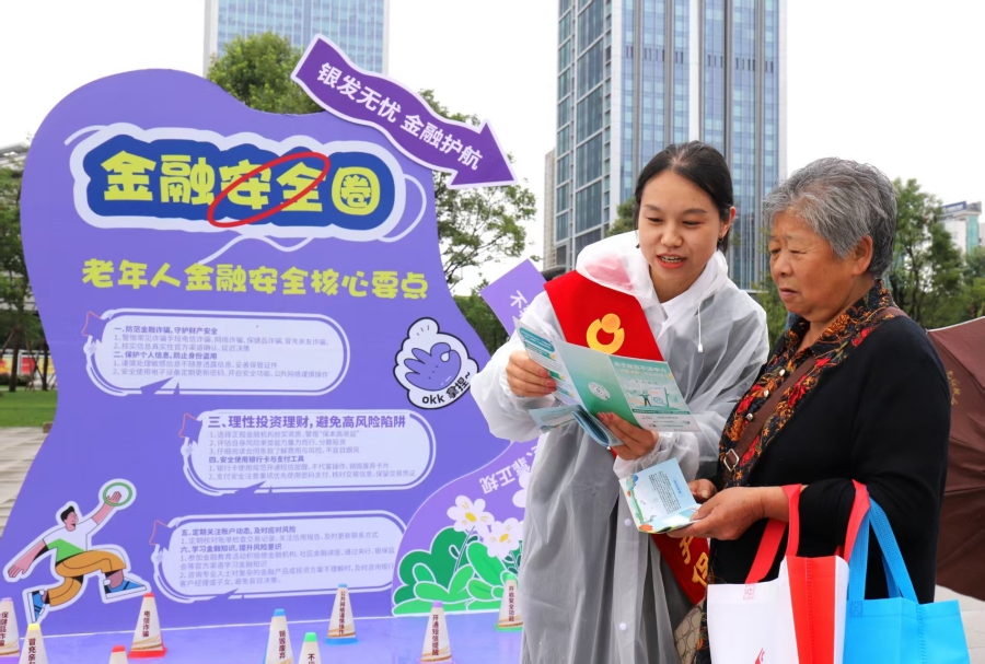 工作人员为“银发人群”讲解金融知识(资料图)。