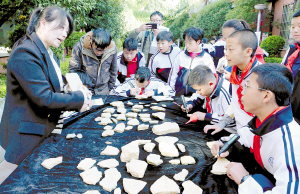 地质科普走进民大附中,专业人员向学生讲解化石标本修复。记者杨艳辉摄