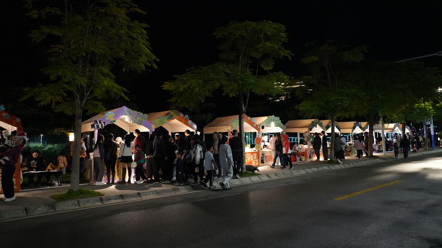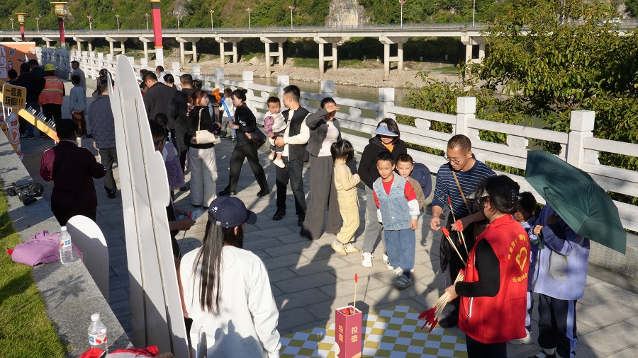 草果“楽”市集位于布莱恩咖啡庄园旁,趁着周末,许多市民带着孩子前来体验丰富的游园活动,投壶、扔沙包、套圈等活动吸引了不少家长和孩子。烟火气十足的市集,迎来每天1500人次的客流量。