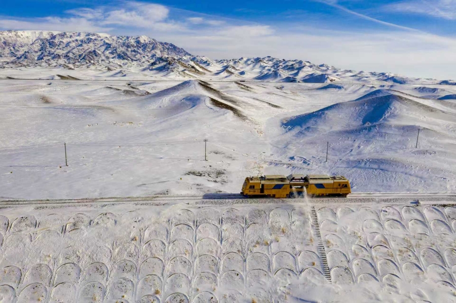 GCX-1000轨道清雪车进行除雪作业(资料图)。
