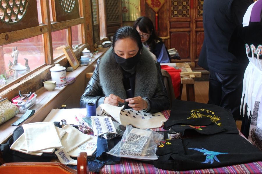 学徒在白沙锦绣艺术院学习刺绣(12月3日摄)。