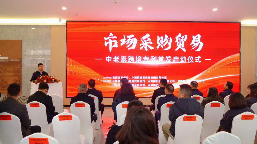 这趟专列充分借助中老铁路核心干线的运输优势,创新采用“铁路+公路”多式联运模式,将提升货物综合运输效率,从昆明出发预计最快5天就能抵达曼谷。首发当天,运营方代表云南能投物流有限责任公司与企业代表云南澜海新途物流有限公司,分别围绕专列核心优势、当前贸易发展情况及企业面临的新机遇展开宣传推介。