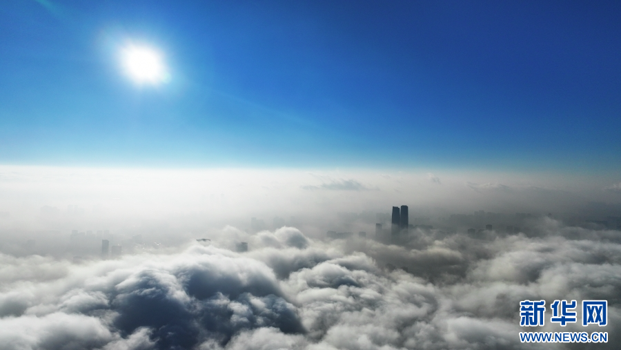 城市笼罩在云雾之中(摄于12月10日)。新华网 赵普凡 摄