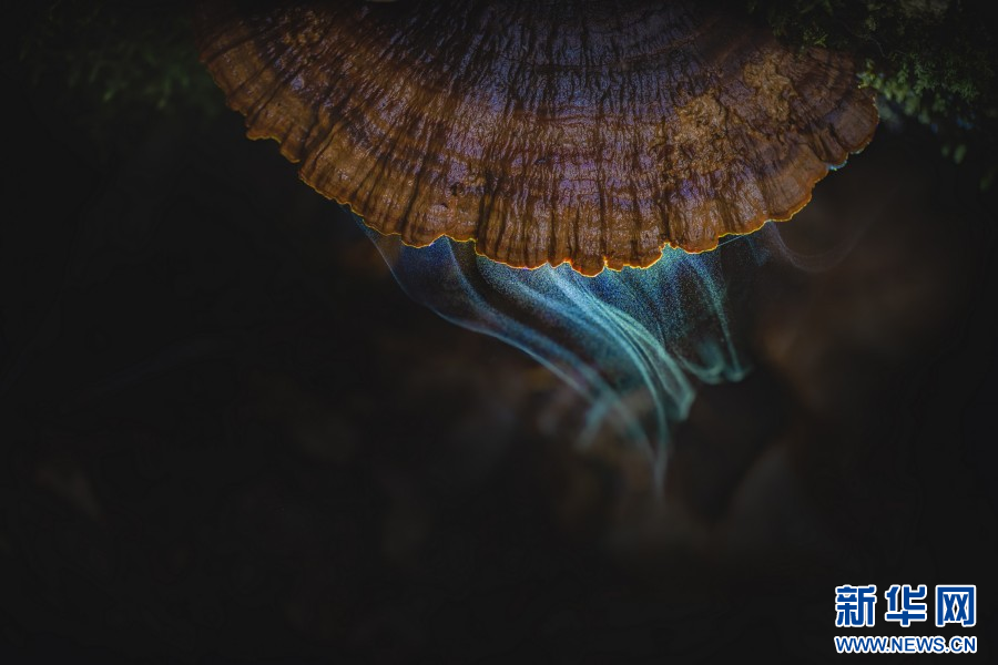 摄影作品:多孔菌喷孢子。新华网发(王璟 摄)