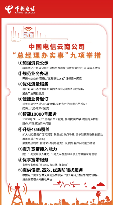 据介绍,今年以来,云南电信针对群众反映集中的问题,梳理制定并公开了“总经理办实事”九项具体举措,用实际行动回应民生期待。在资费管控上,云南电信严管在售公众套餐数量,在网上营业厅、官方APP设立资费专区,集中公示所有在售套餐,严格执行“未公示不销售”;针对“不知情订购”痛点,上线全省统一的“业务订购鉴权核验平台”,线上线下所有渠道的订购行为均需经过集中核验确认,从源头堵住违规办理漏洞。
