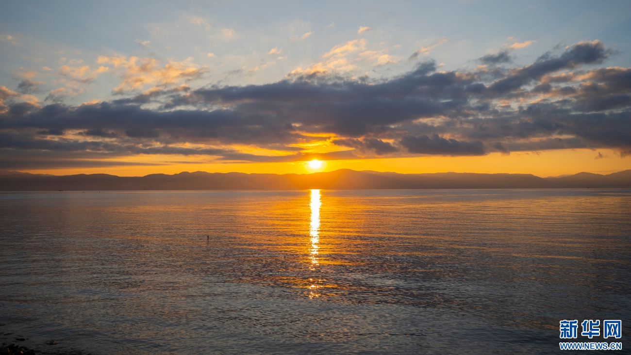 抚仙湖日落美景(12月23日摄)。新华网发(谢罗凯 摄)