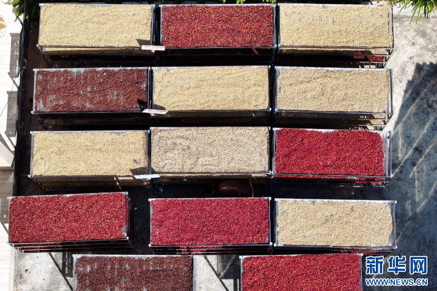 泸水市上江镇付坝村村民乔玉光家院子里晒满咖啡(12月8日摄)。新华网发(罗金合 摄)