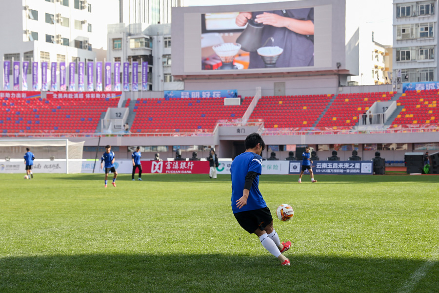 目前,各方工作人员正在昆明体育中心体育场为次日的比赛作准备。据悉,昆明体育中心体育场在今年升级了球场草地、灯光效果、观众看台座椅及休息室配套等,助力比赛双方发挥更好水平。(完)