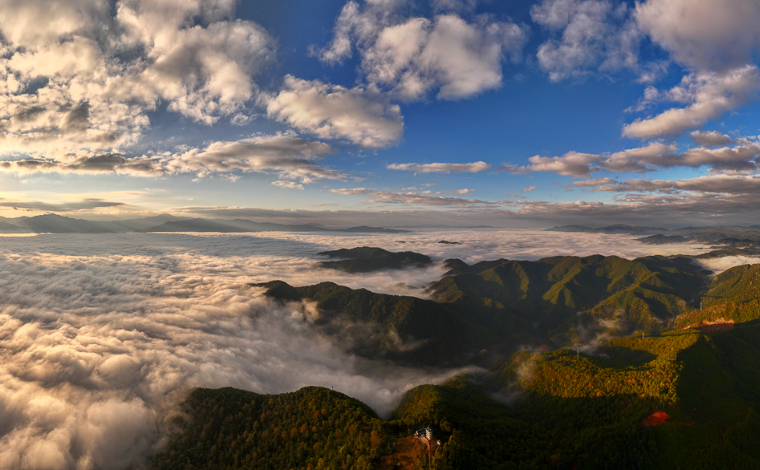 阳光照耀下的云海及群山(12月23日摄)。新华网发(刘东 摄)