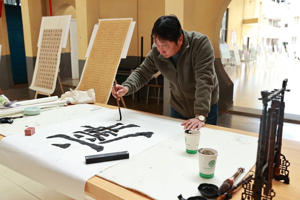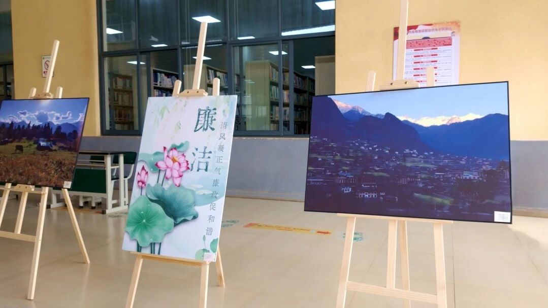 活动期间,廉洁文化主题展览在云南农业职业技术学院小哨校区图书馆正式开展,成为系列活动的亮点环节。展览现场设置主题摄影展区、绘画展区、书法展区,并特别开设现场书法创作互动环节。