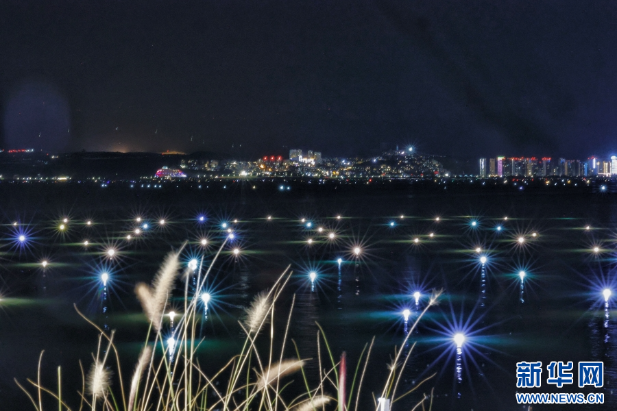 洱海鱼类生态调控期间,万千渔灯犹如星星落入洱海(摄于11月13日)。新华网 赵普凡 摄