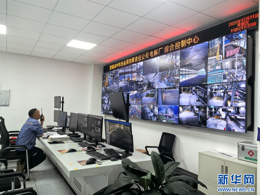 楚雄滇中有色金属有限责任公司电解厂综合控制中心(10月31日摄)。新华网发(李振新 摄)