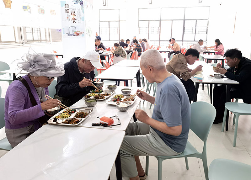 卯家湾易地搬迁安置区内的“幸福食堂“里,搬迁群众正在就餐。砚池街道供图