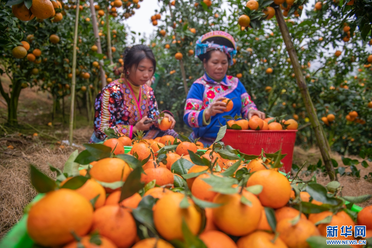 冬日里,云南省文山州马关县都龙镇的橘园基地里,饱满的橘子挂满枝头,果农们喜笑颜开,有条不紊地采摘、分拣、打包,一派丰收景象。(熊平祥)