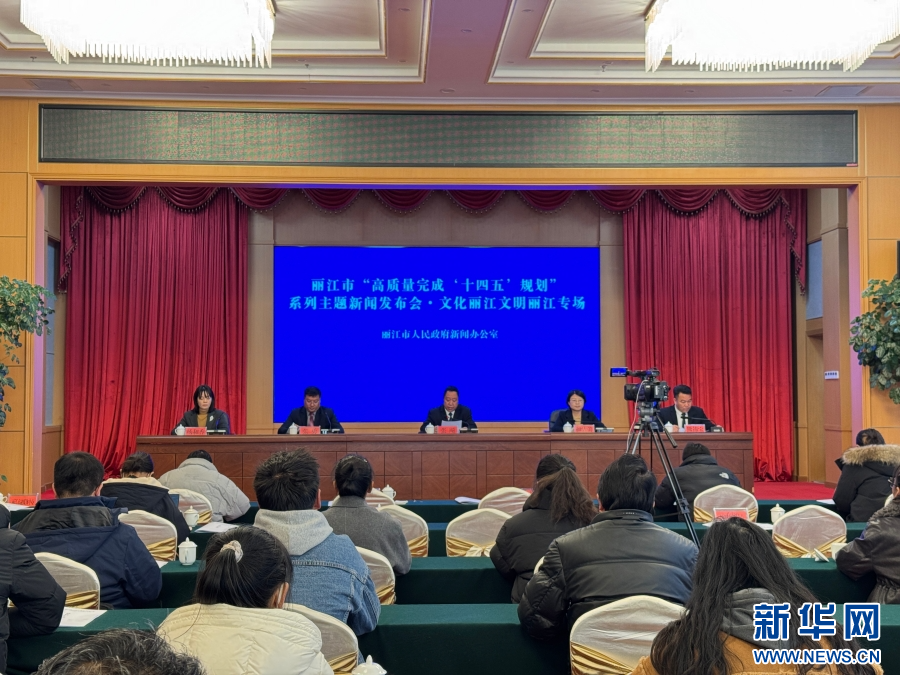 云南省丽江市“高质量完成‘十四五’规划”系列主题新闻发布会·文化丽江文明丽江专场现场(1月5日摄)。新华网发