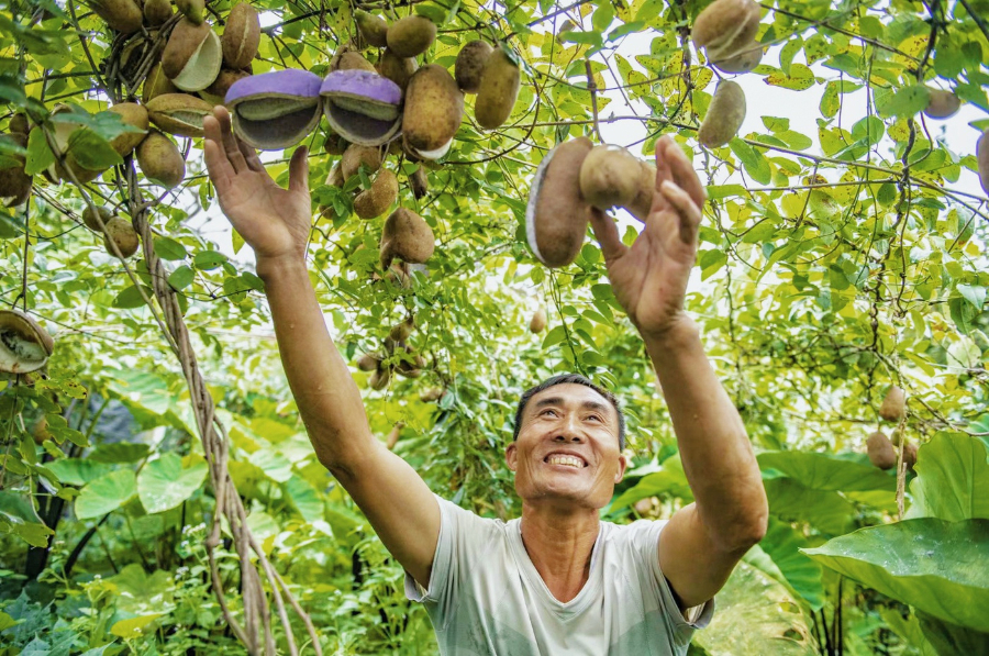 富宁县田蓬镇下寨村村民在采收八月瓜