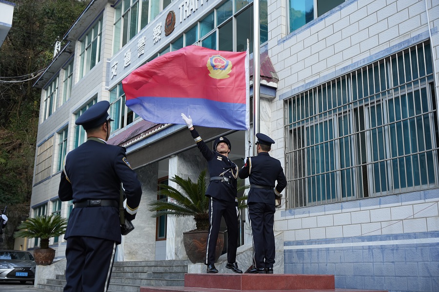 同一时间,在泸水市、福贡县、贡山县、兰坪县公安局,庆祝活动同步进行。全州上下警旗同升、誓言同宣,共同汇聚起怒江公安忠诚担当、奋勇前进的磅礴力量。