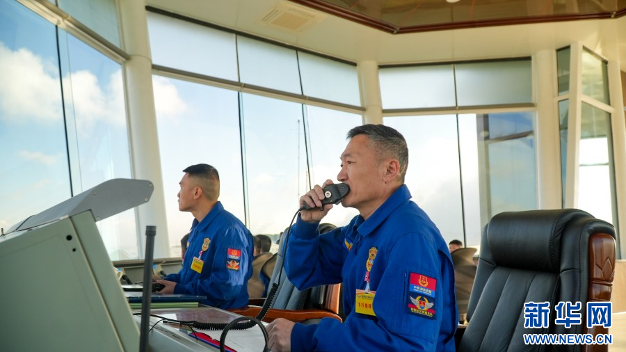 飞行指挥员正在指挥直升机(1月9日摄)。新华网发(骆银文 摄)