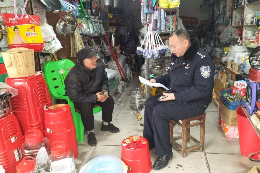 民辅警到商铺开展反诈宣传(1月19日摄)。邓琴 摄