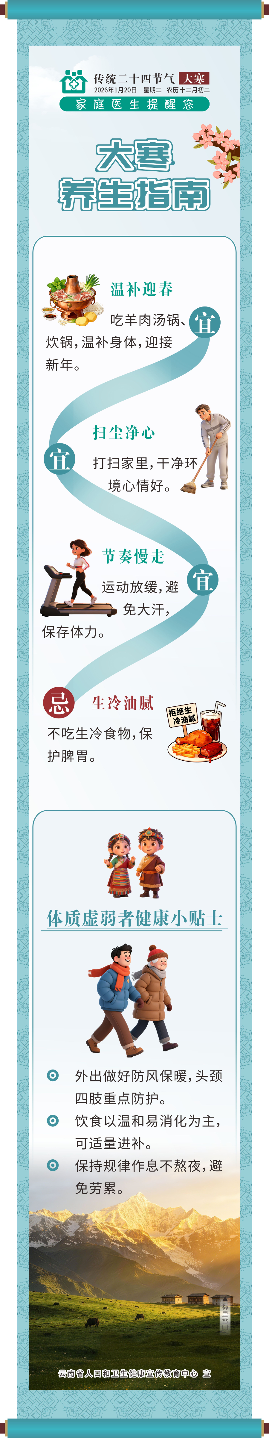 大寒节气养生指南:防风保暖 温补身体 规律作息不熬夜