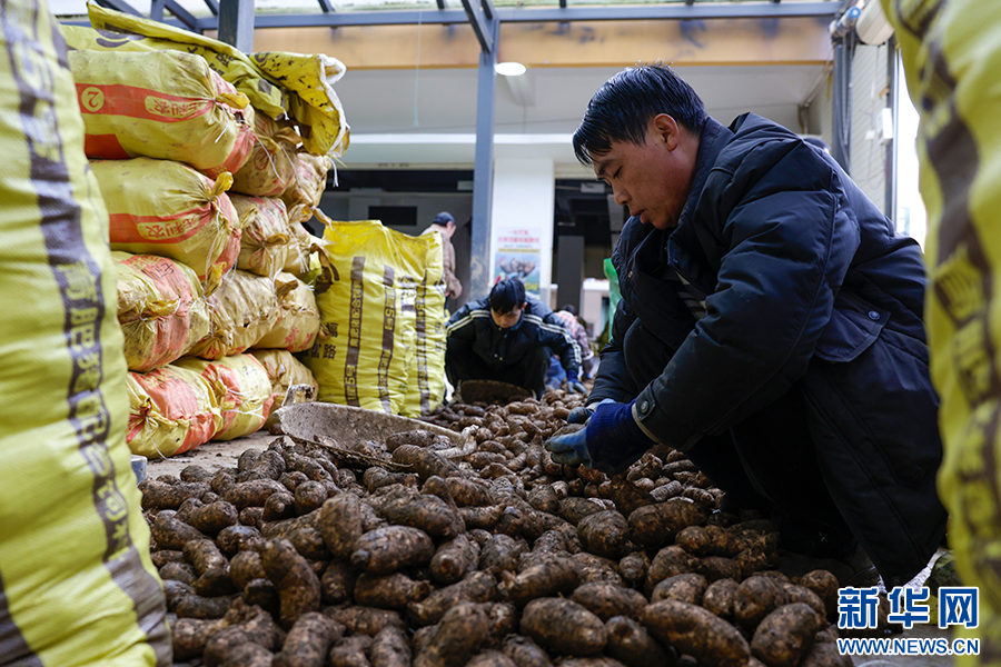 小草坝天麻交易中心内,农户在分拣天麻(2025年11月20日摄)。新华网发(徐华陵 摄)