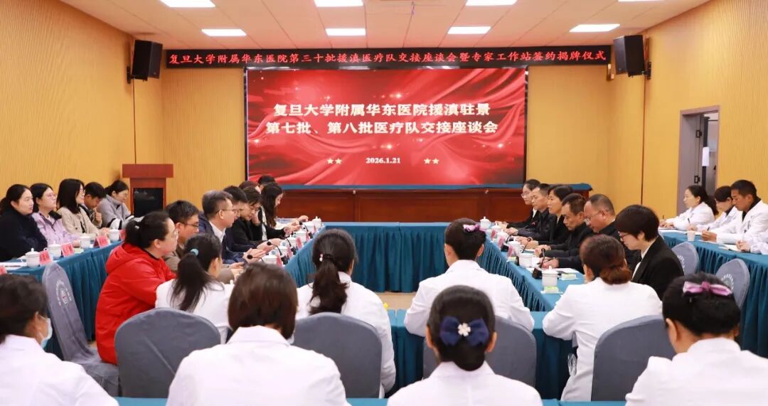 1月21日,复旦大学附属华东医院援滇驻景第八批医疗队交接座谈会暨专家工作站揭牌仪式在县人民医院举行。心血管科曲新凯、呼吸与危重症医学科李向阳、消化内科陈源文、耳鼻咽喉头颈外科韩朝专家团队工作站同步落地,标志着景谷首次引入省外三甲医院常态化、平台化的高层次医疗协作机制,沪滇医疗帮扶由此迈向“造血式”“长效化”新阶段。