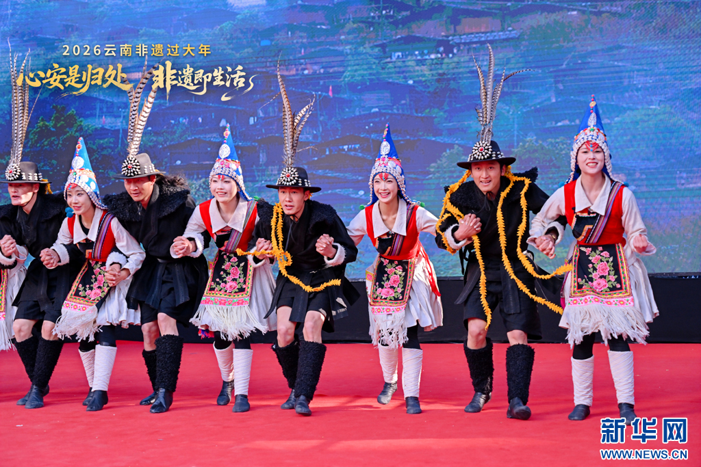 非遗展演大观园民族歌舞乐表演(1月30日摄)。新华网发