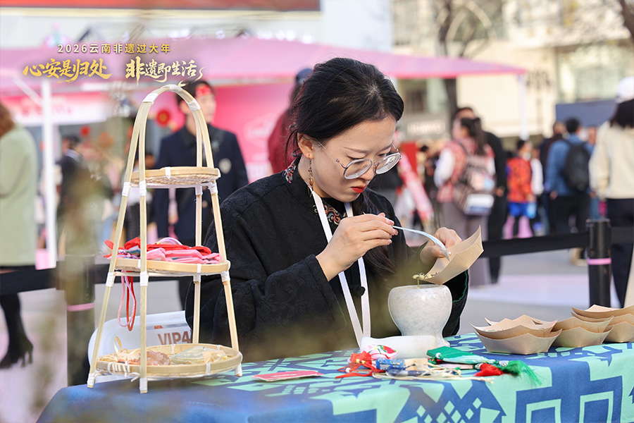日前,在昆明市举行的“心安是归处 非遗即生活”——2026云南非遗过大年活动现场,非遗代表性传承人与民间手艺人带领体验者一起制作面塑、剪纸、草编、香囊等,满怀期待准备迎接新年到来。(完)