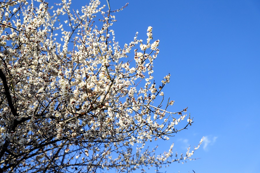 蓝天下绽放的梅花(2月9日摄)。劳海山 摄