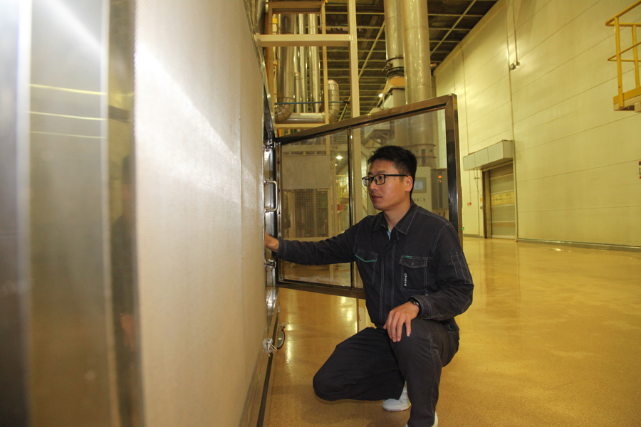 制丝车间技术员查看热交换器的运行情况(资料图)。