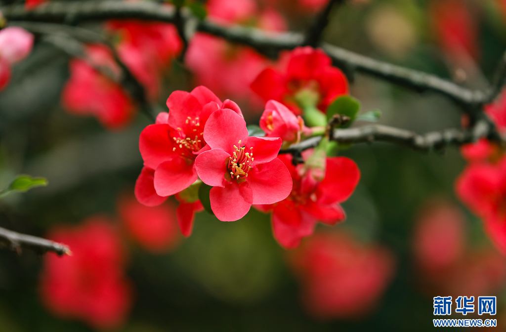 昙华寺公园盛开的木瓜花(2月8日摄)。新华网发 郑益 摄
