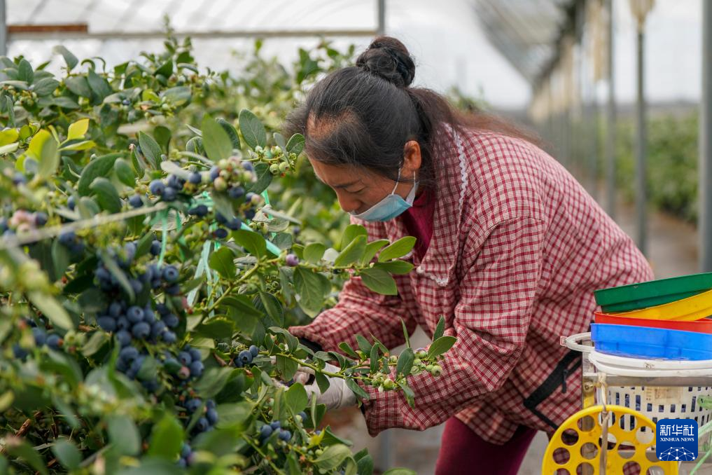 2月27日,工人在蒙自市一处蓝莓生产基地采摘蓝莓。新华社记者 彭奕凯 摄