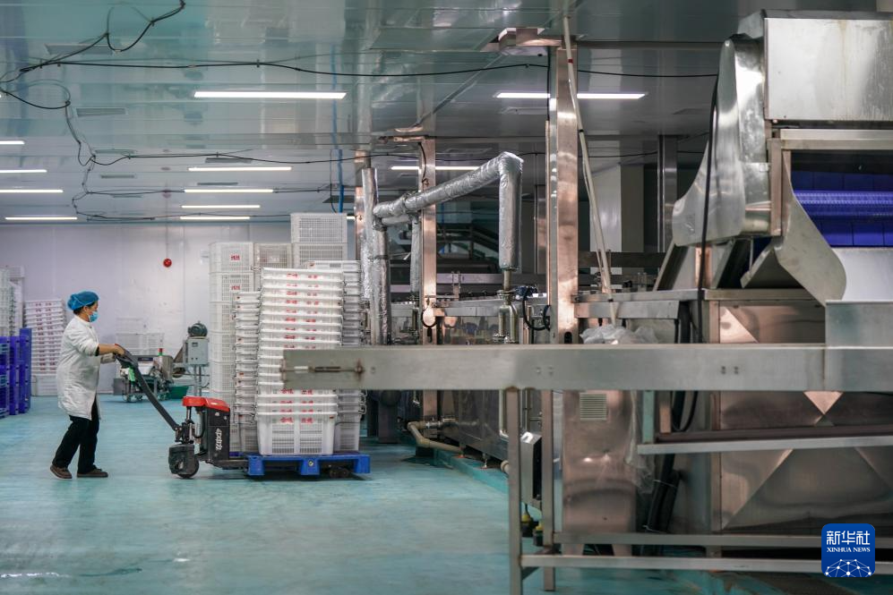 2月27日,蒙自市一家米线生产企业的工人在工厂内运输米线。新华社记者 彭奕凯 摄