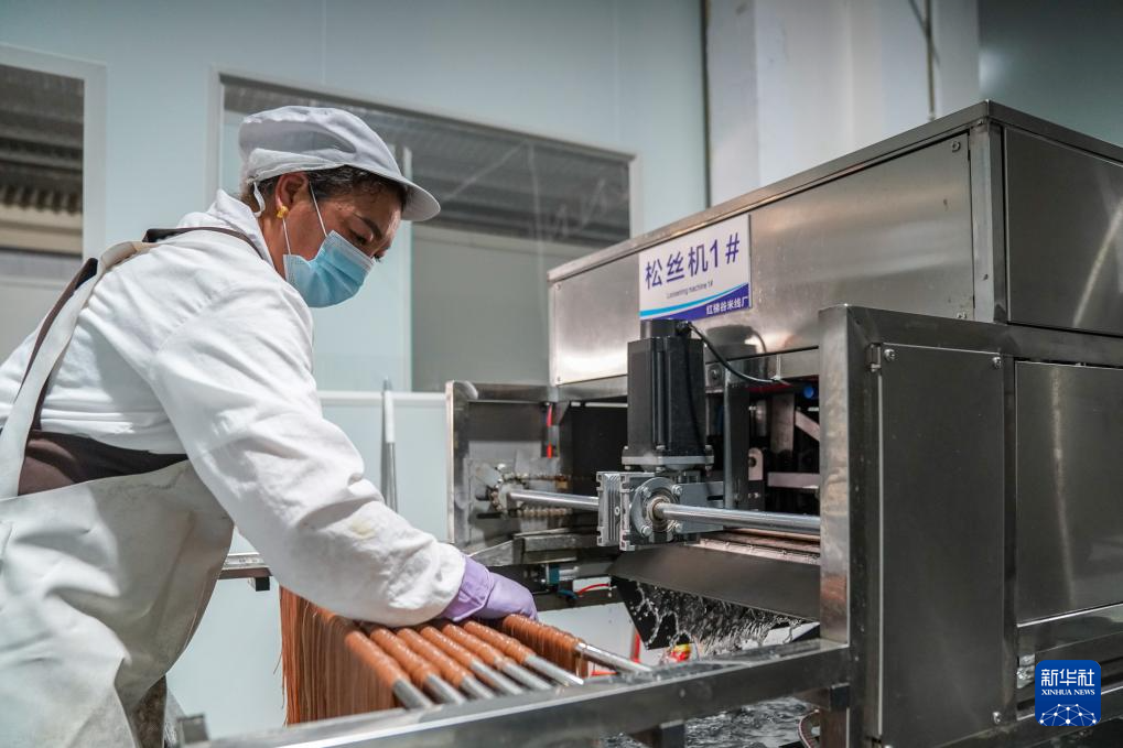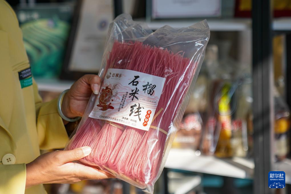 这是2月27日在蒙自市一家米线生产企业拍摄的特色石榴米线。新华社记者 彭奕凯 摄