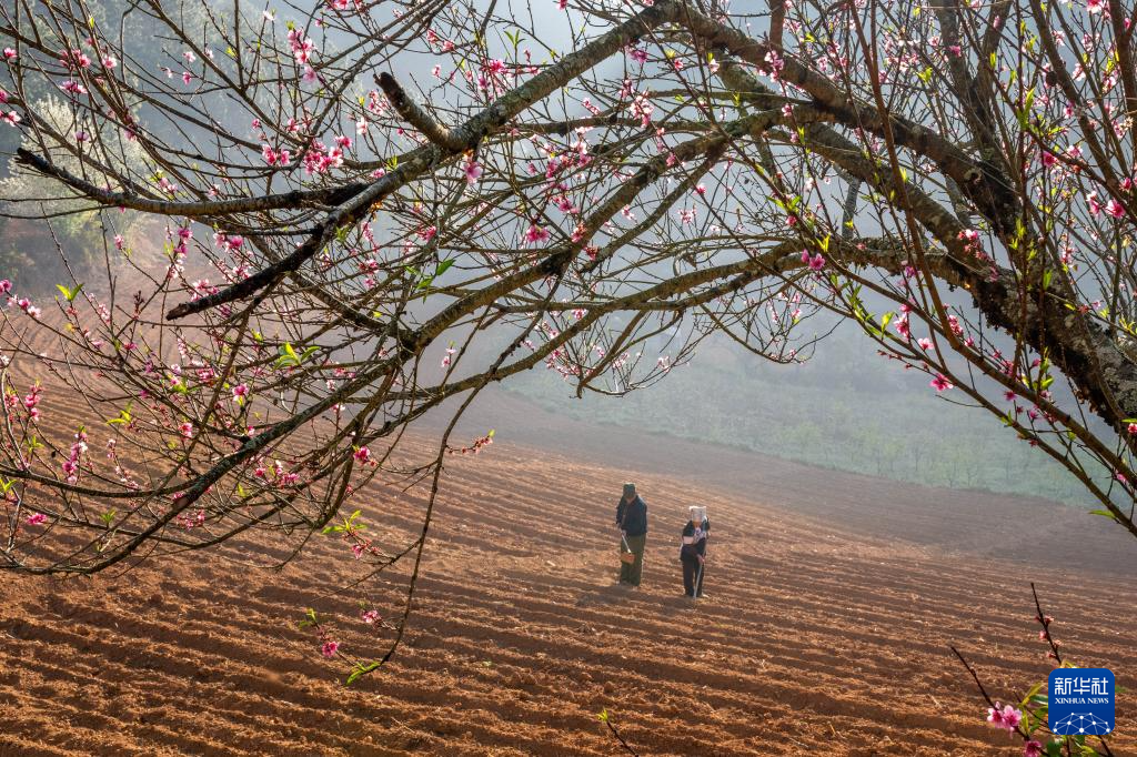 2月27日,在云南省文山壮族苗族自治州文山市东山乡,村民在田间犁地。新华社发(熊平祥摄)