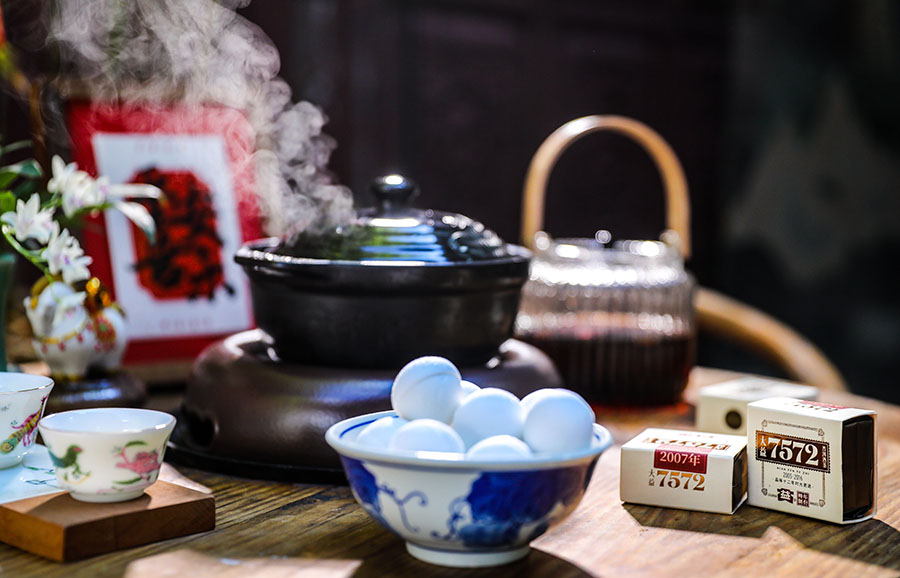 普洱茶汤圆(3月2日摄)。