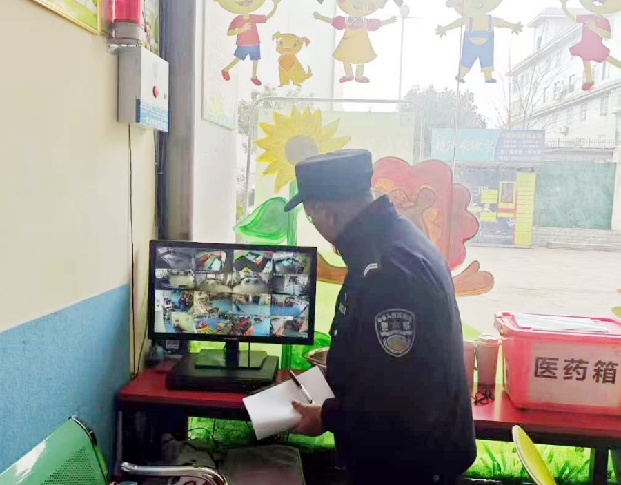 场坝派出所民警检查校园安防系统(3月1日摄)。