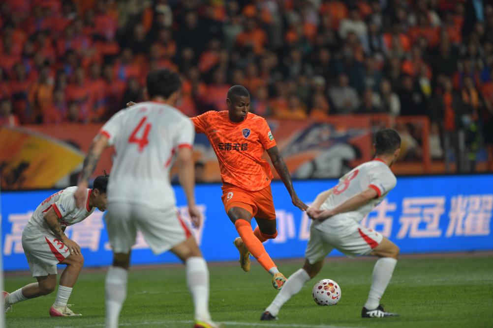 比赛开始,玉昆气势如虹,第12分钟,新加盟球队的1.95米前锋克莱伯建功,他接杨梓豪传中,门前抢点得分。3分钟后,玉昆获得角球机会,球门附近的弋腾高高跃起,头球再进一球。
