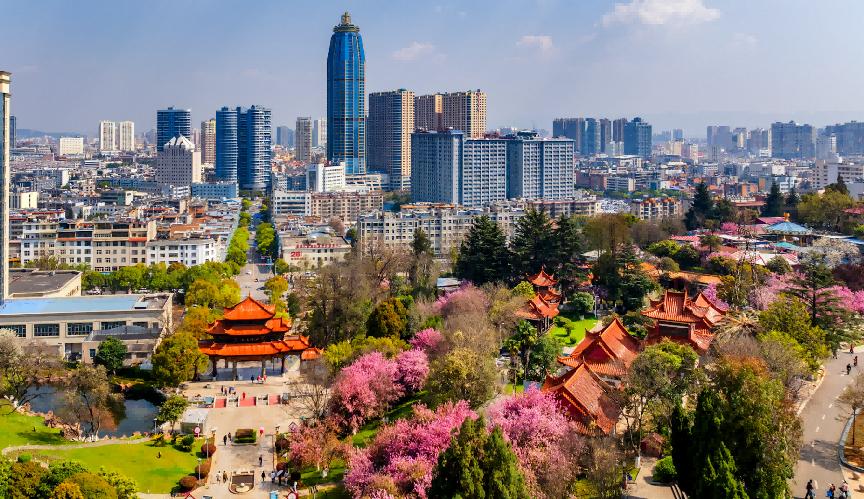 曲靖市春日街景(3月17日摄)。
