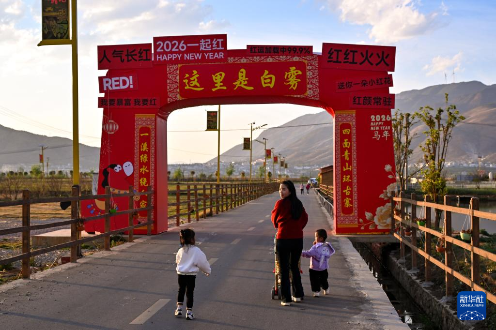 2026年3月24日,村民在白雾村田间道路上散步休闲。