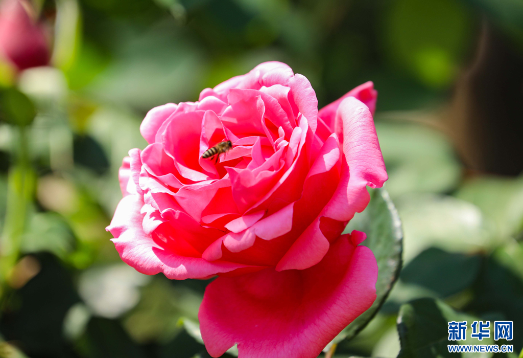 绽放的月季(4月12日摄)。新华网发(郑益 摄)
