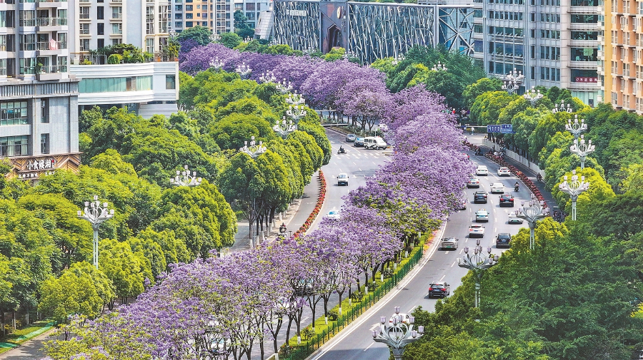 北京路道路中央绿化带往年盛开的蓝花楹。 本组图片均为资料图片