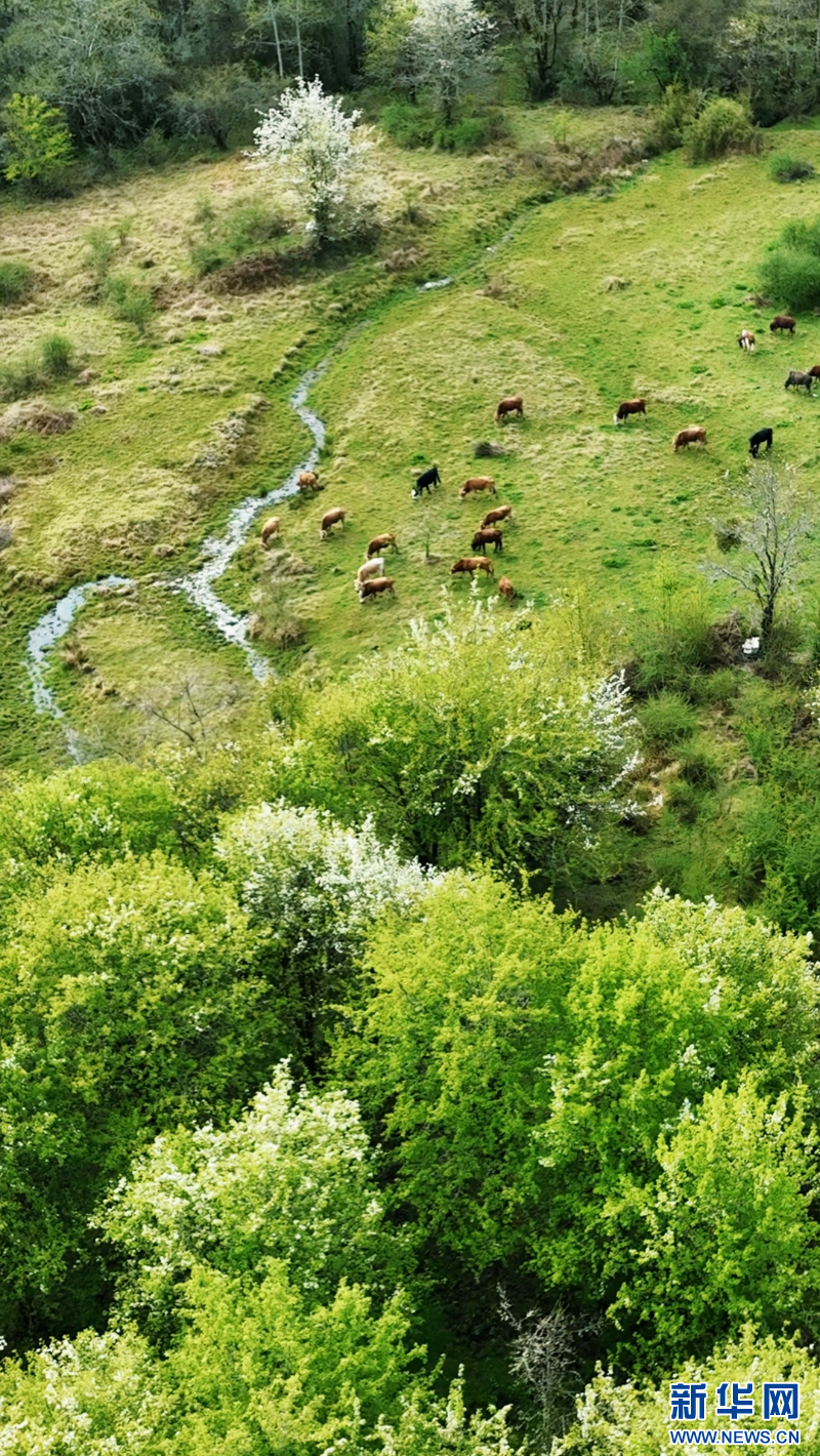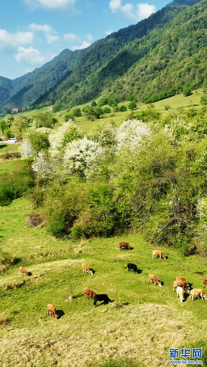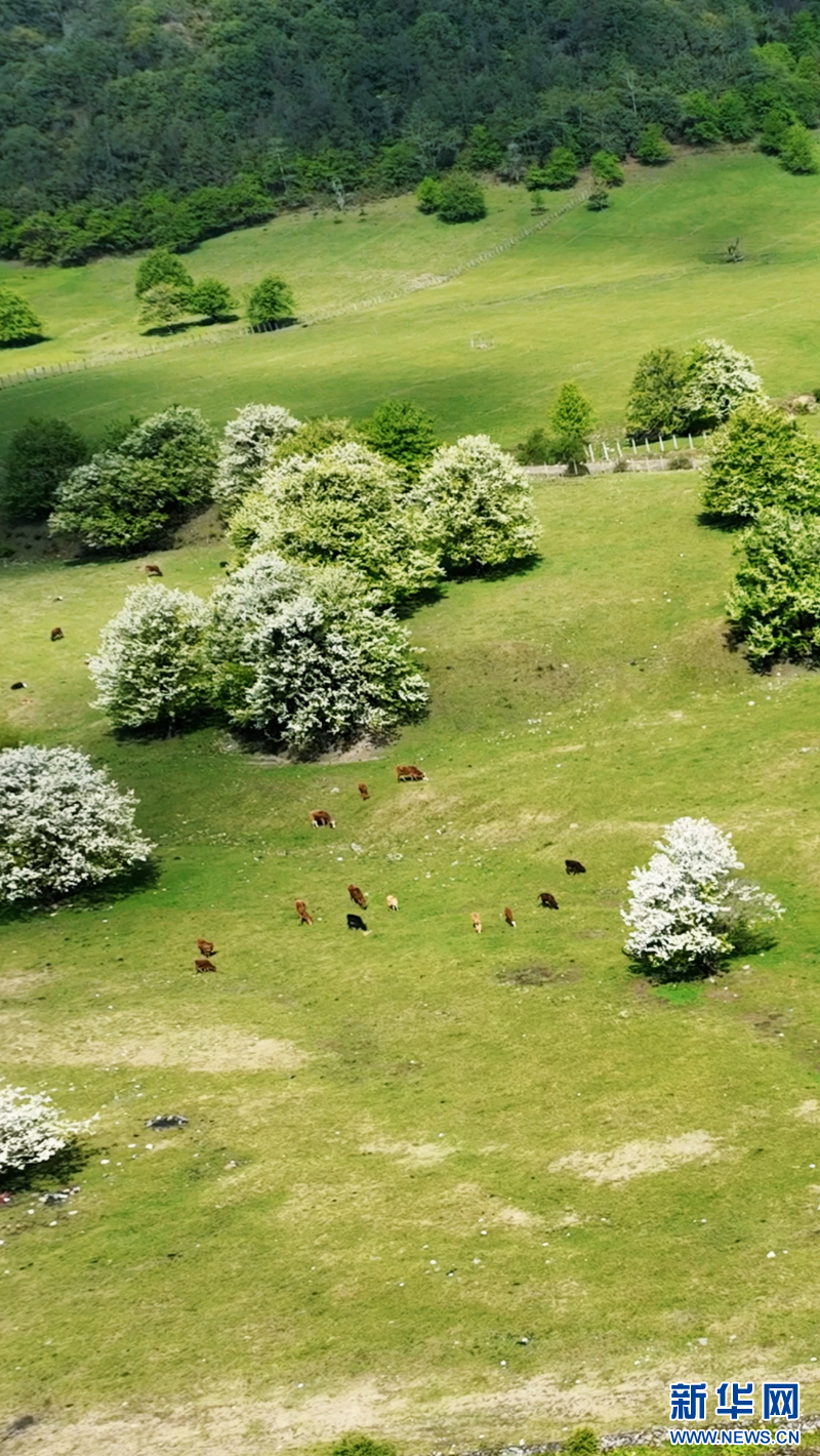 近日,云南省保山市腾冲市明光镇大竹坝棠梨花进入盛花期,洁白花瓣缀满枝头,微风拂过,花瓣轻落草甸。大竹坝三面环山,风光秀美,溪水潺潺,棠梨花下,牛羊悠然漫步,构成一幅美丽的田园画卷。(腾冲市融媒体中心 刘正凡 陈娟 董正东 李谚)