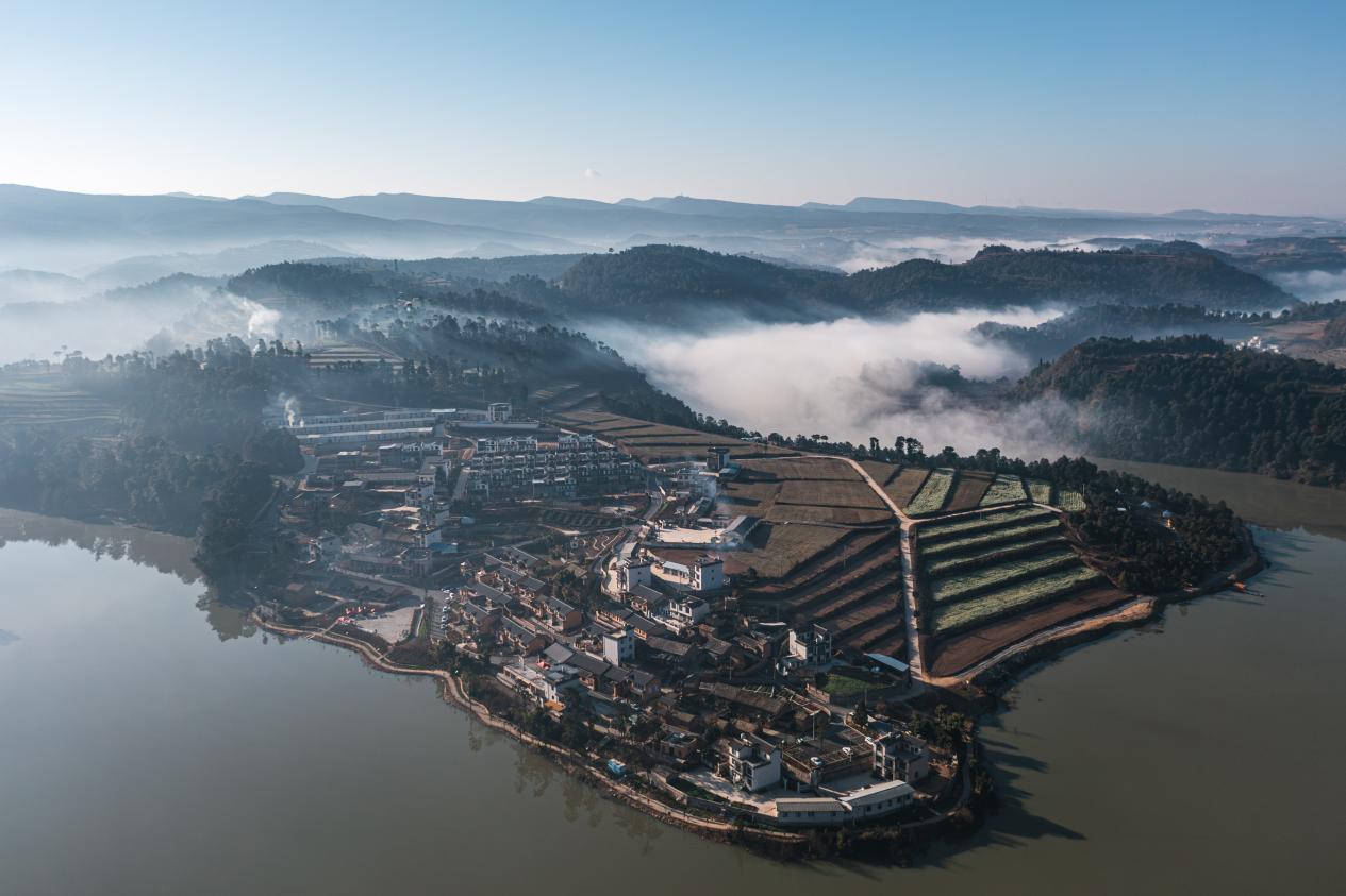 曲靖市马龙区黄坝村航拍图(资料图)。